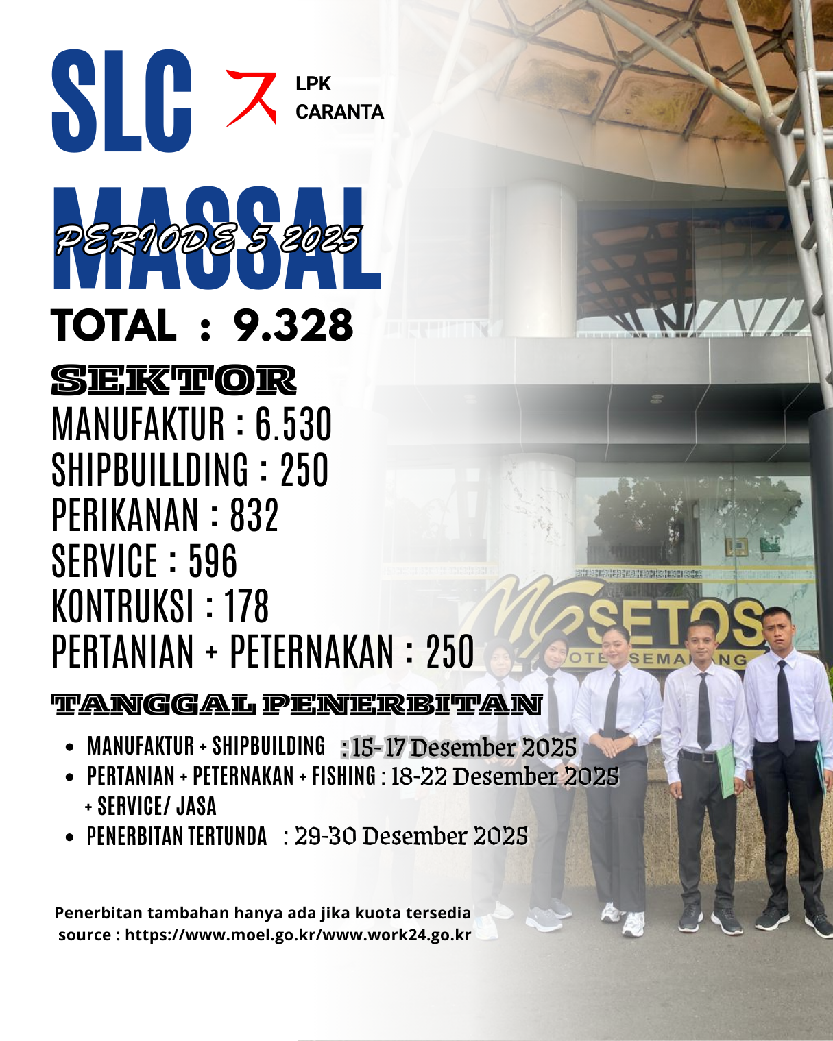 SLC MASSAL yang di tunggu” lagi dari semua lulusan korea, kini sudah tinggal hitungan minggu akan muncul di bulan oktober periode ke 4. semoga nama” kalian ada yaaa