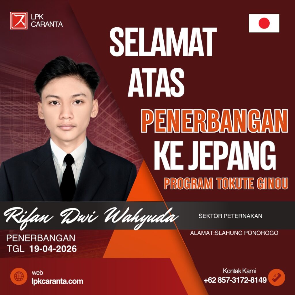 ini adalah beberapa siswa jepang di LPK CARANTA yang sudah mendapatkan Job di pertanian, peternakan bahkan di pengelolahan makanan dan tinggal menunggu COE dan berangkat ke jepang