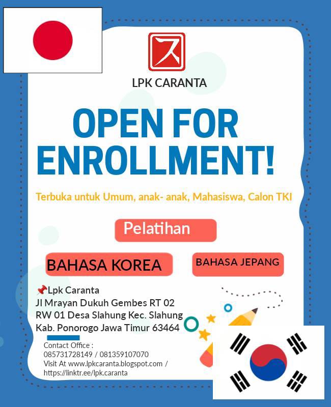Lpk caranta adalah lembaga pelatihan bahasa KOREA & JEPANG dengan Program G to g KOREA dan Tokutei Ginou JEPANG