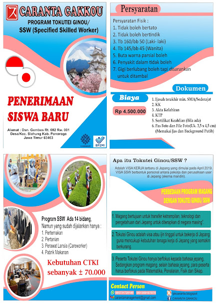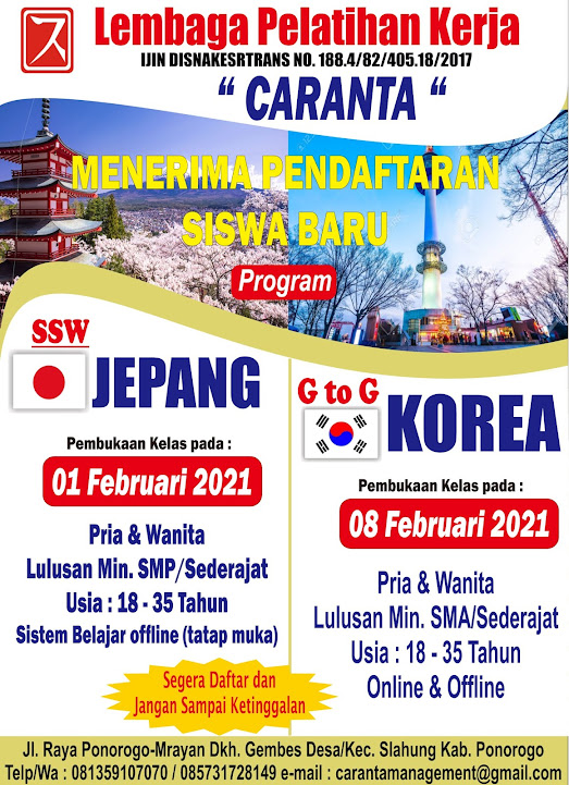 PENERIMAAN PESERTA DIDIK BARU PROGRAM KERJA KE KOREA DAN JEPANG