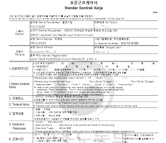 SLC (Standart Labour Contract) / Kontrak Kerja KOREA LPK CARANTA 2021